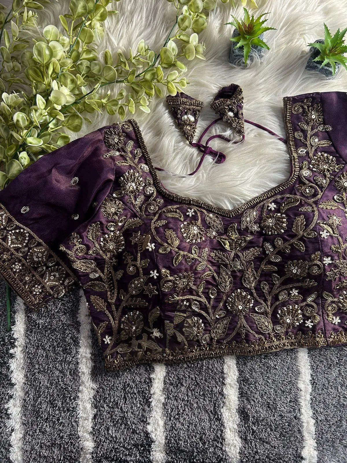 *BEAUTIFUL HEAVY STARS & BEADS COPPER MATCHING WORK BRIDAL BLOUSE* *Heavy Handwork + Sequence & Codding Thread Work* *FABRIC*:--Heavy Pure Soft Pure Cosmos Silk . *SIZE*:-*38” Ready ulter upto 40- 42 Inch.* *SLEEVES*:- *12” Sleeves Attached* *DESIGN*:- Beautiful Work Partywear desgine Heavy Stitching Heavy Padded Handmade Hooks With Beautiful Latkans BACK open Style Rb DM to order +16892678636 whatsapp/call/message 🌿🌿🌿🌿