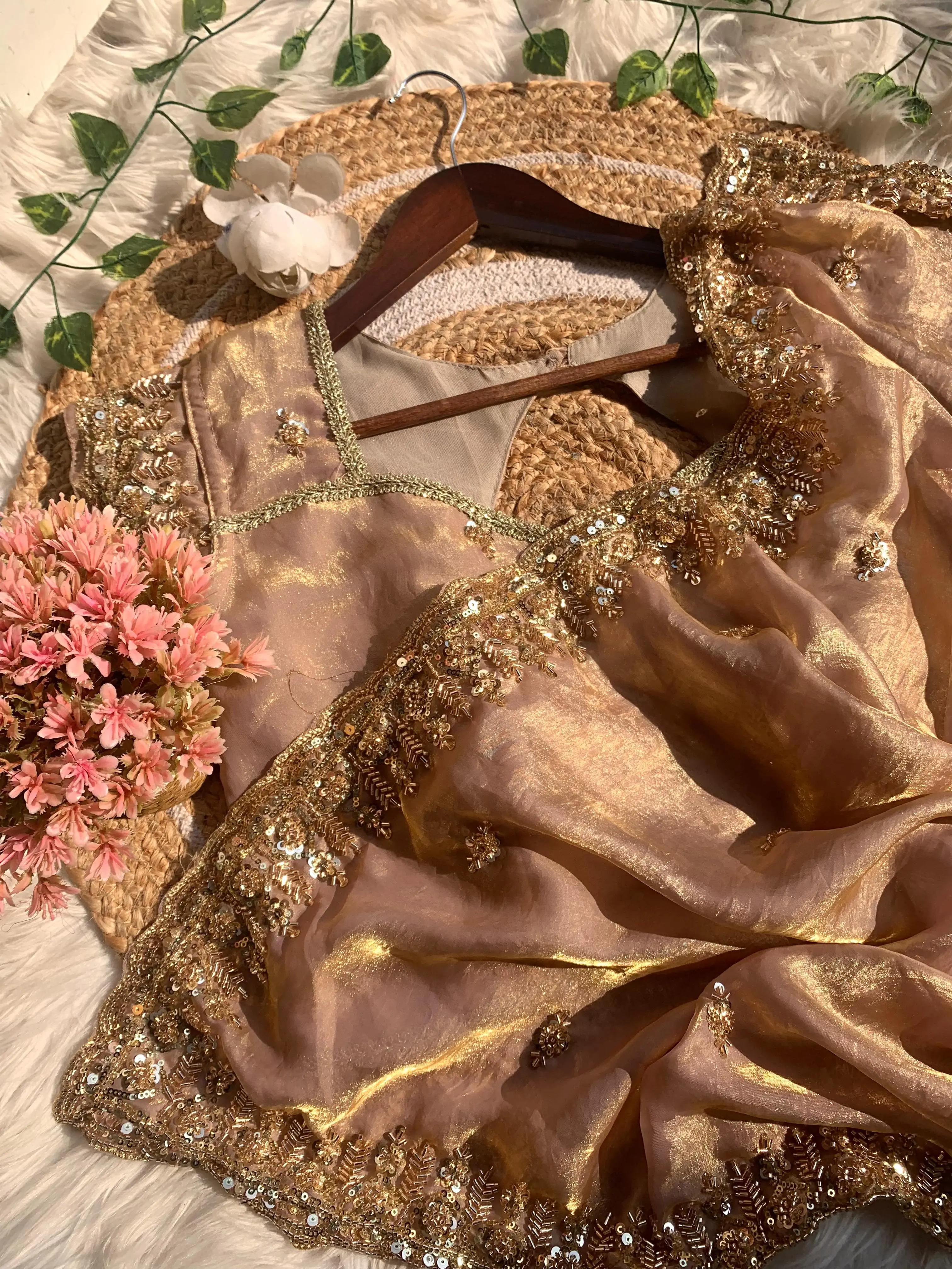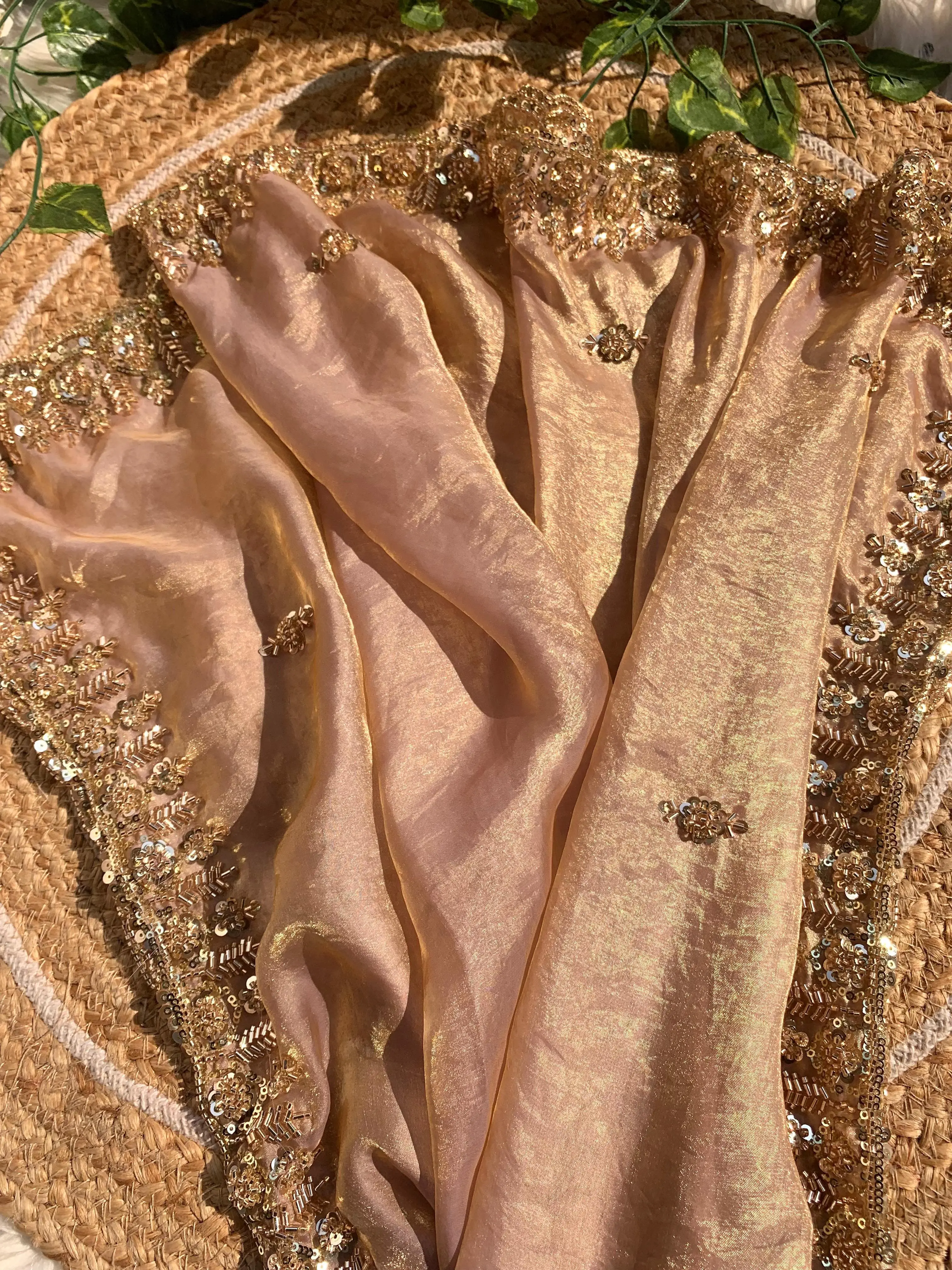 *Fresh New Arrivals πŸŽ‰* *Joya πŸ₯°β€οΈ* Very soft elegant nd rich look fendy sartin saree with beautiful hand mechine beats cutdana work heavy border nd buttis in all over saree with aarco Paired with unStiched beats cutdana work blouse on running fabric Tan DM to order +16892678636 whatsapp/call/message 🌿🌿🌿🌿