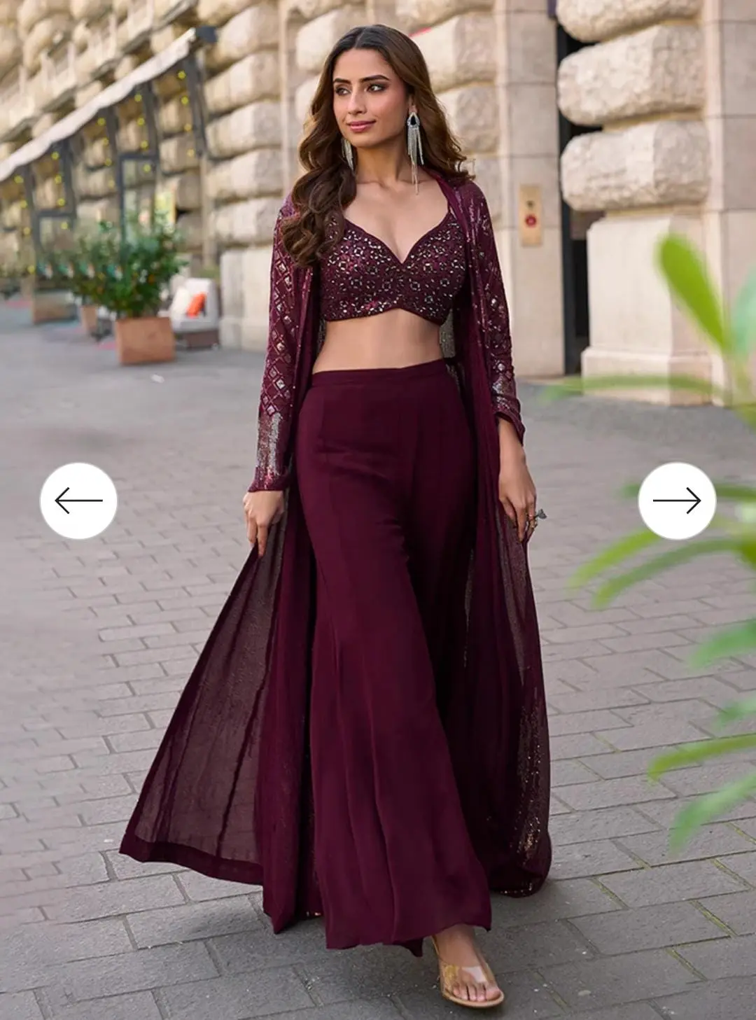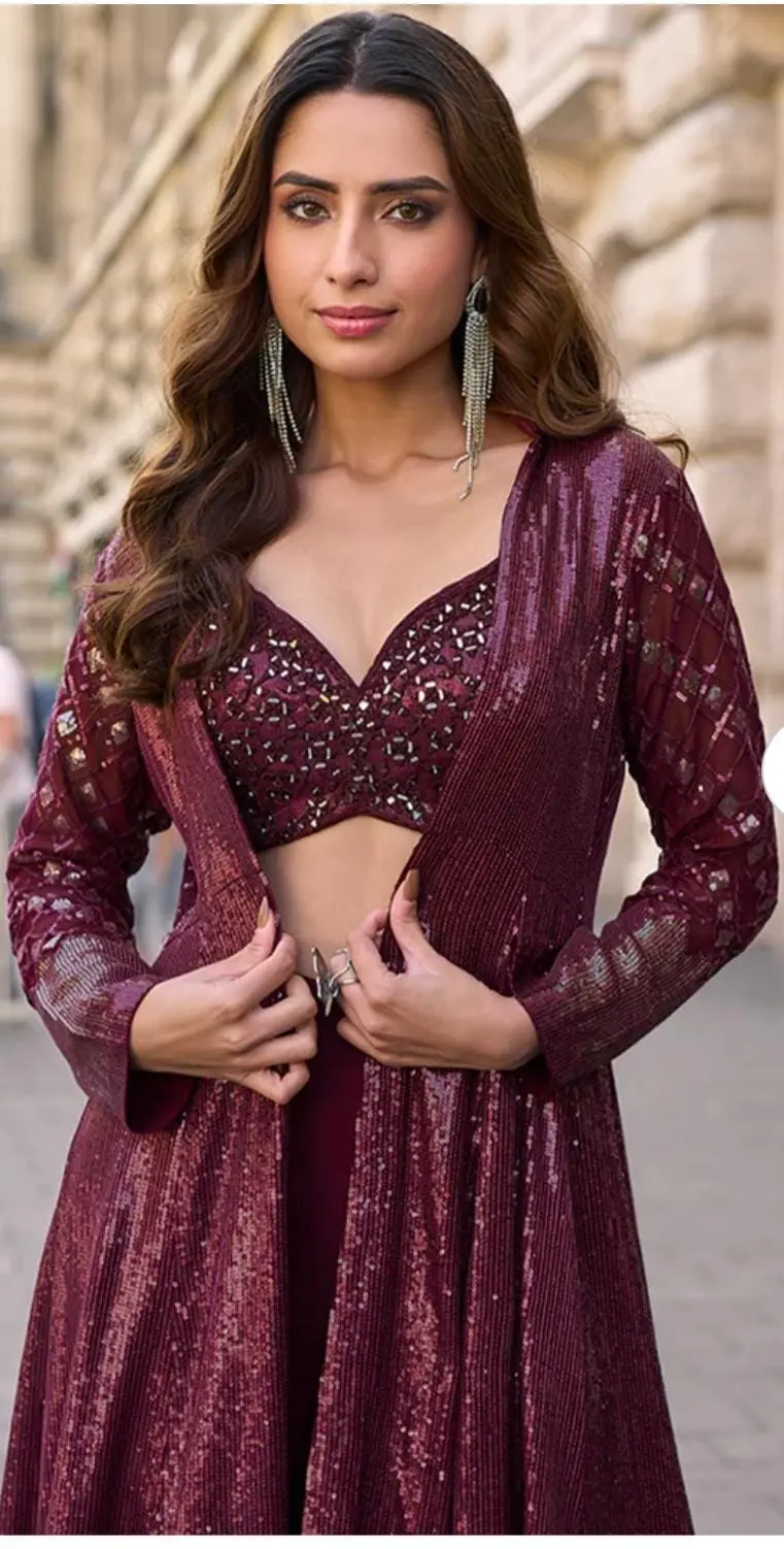 Deep burgundy sequins embroidered jacket style plazo suit prefer for wedding or special occasion DM to order +16892678636 whatsapp/call/message 🌿🌿🌿🌿