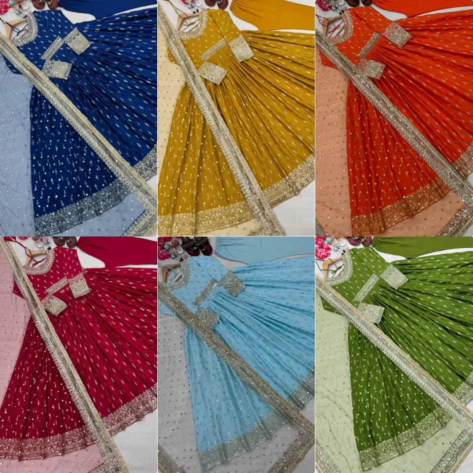 πŸ‘—*Launching New Party Wear Look Pur Chinon Silk Gown,Dupatta & Bottom Set*πŸ‘— 🌿🌿🌿🌿🌿 Size alteration available additional chargesπŸ’–πŸ’–πŸ’–πŸ’– *NEW COLOURS* *Gown Fabric* :Heavy Pur Chinon Silk With Embroidery 5 mm Sequence Work With Sleeve With Tassels *Gown Inner* : Micro Cotton *Gown Length* :54-55 Inches *Gown Flair* : 3 Meter *Bottom Fabric*:Heavy Pur Micro Cotton With Elastic *Bottom Length* 39 Inch *(Full Stitched)* *Dupatta Fabric* :Pur Soft Butterfly Net With Embroidery 5 mm Sequence Work With Four Side Fancy Lace Border *Dupatta Length*:2.20 Meter *Unique Design For Your Unique Style……!!!!* πŸ‘Œβ­οΈ *Good Quality* β­οΈπŸ’—πŸ’« Any alteration charges extra DM to order +16892678636 whatsapp/call/message 🌿🌿🌿🌿