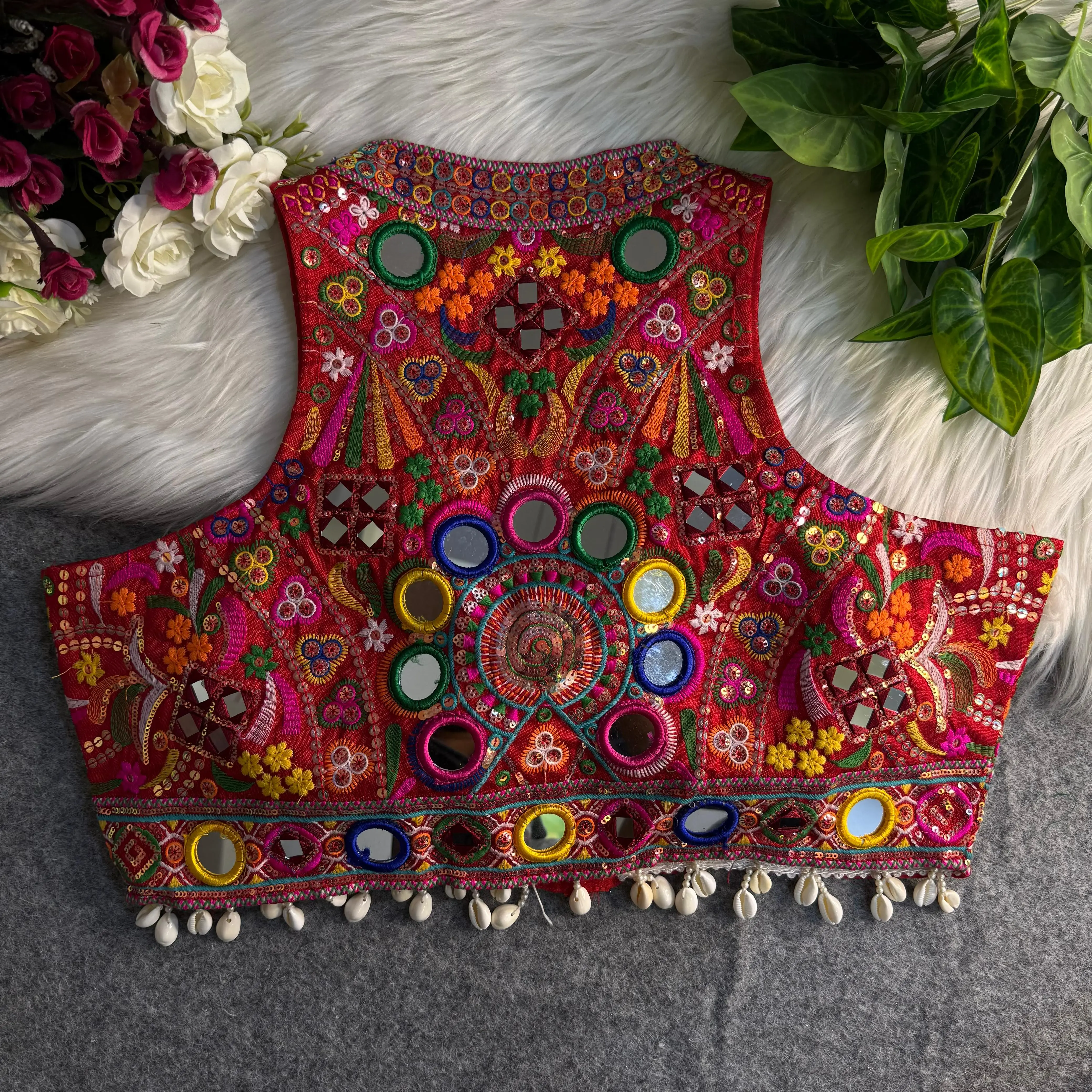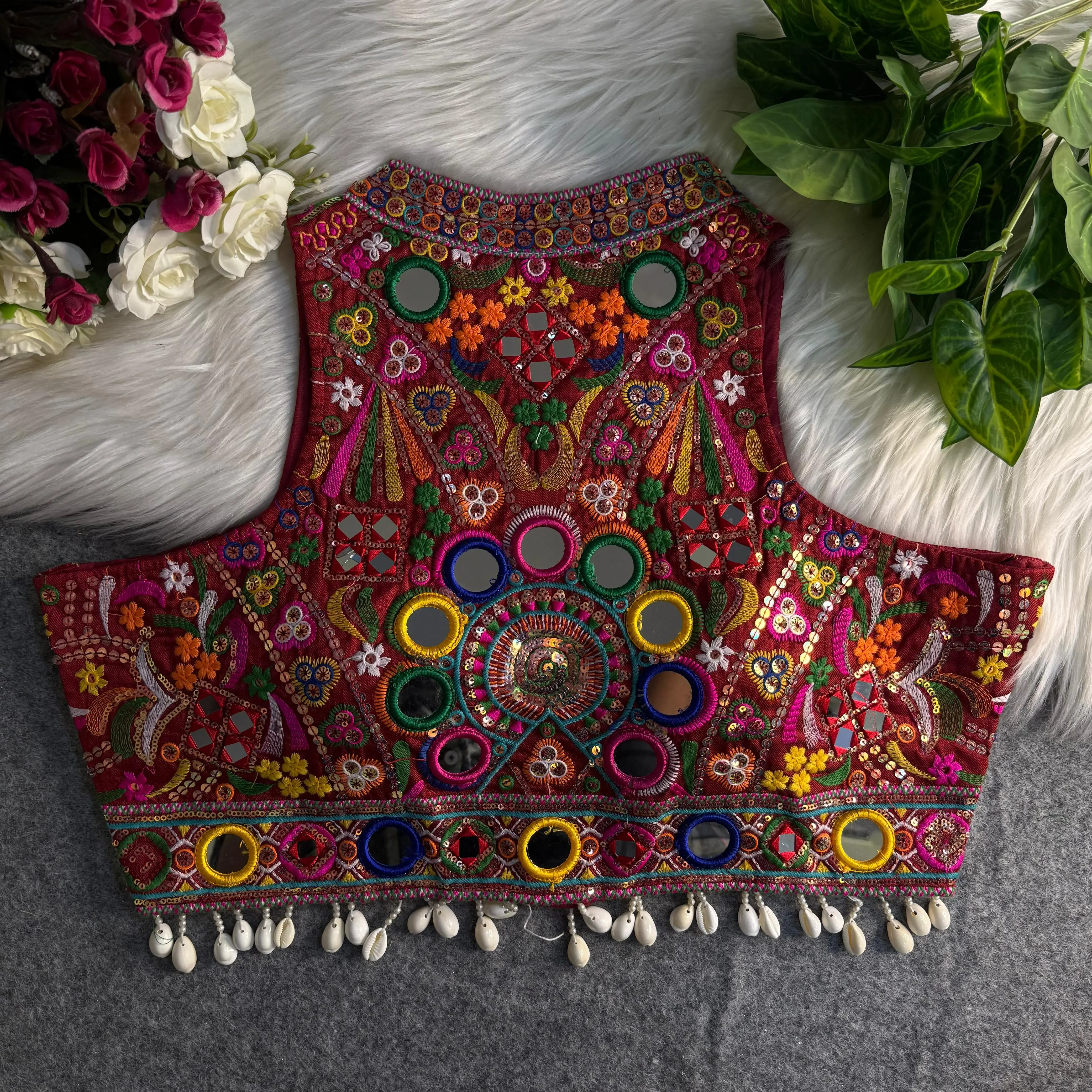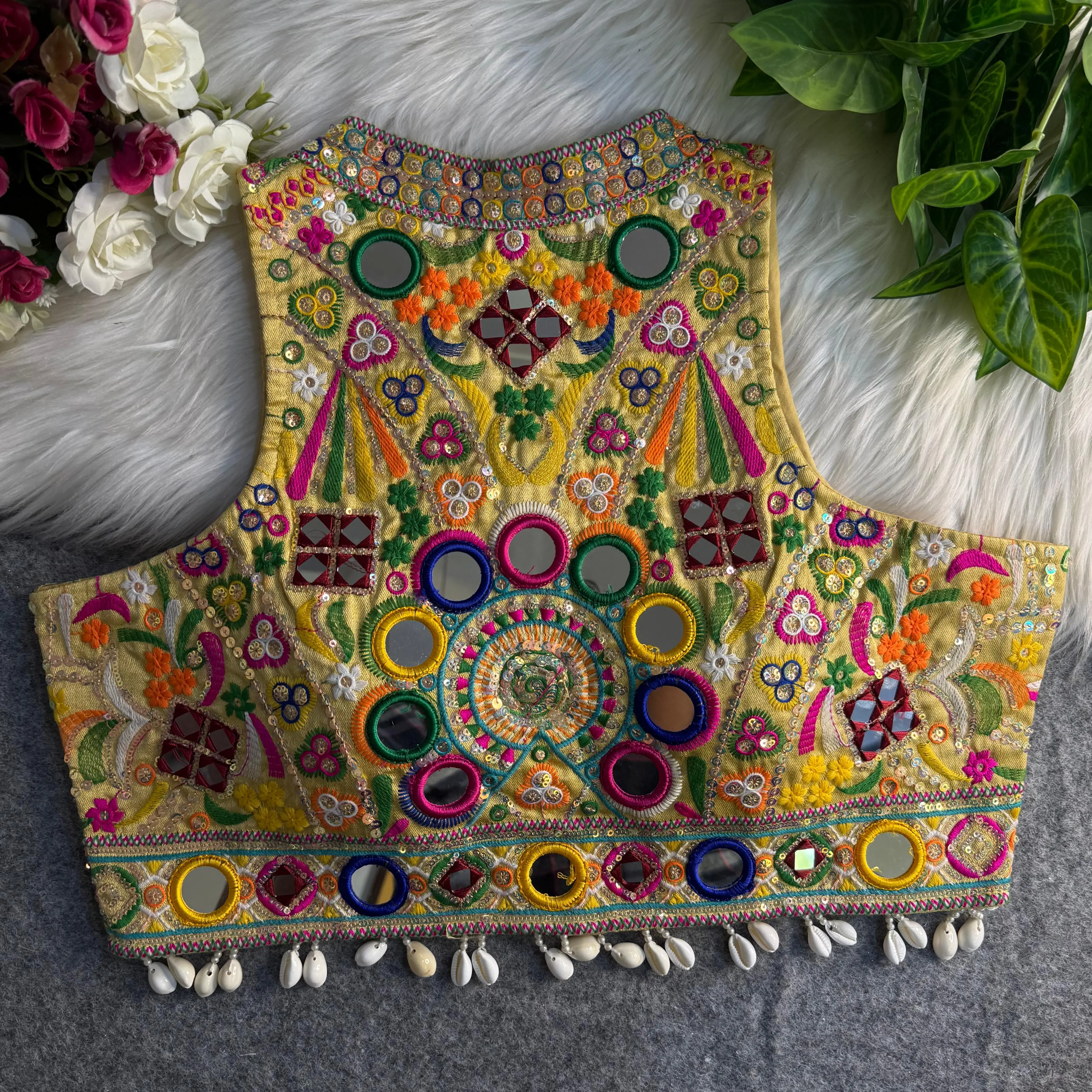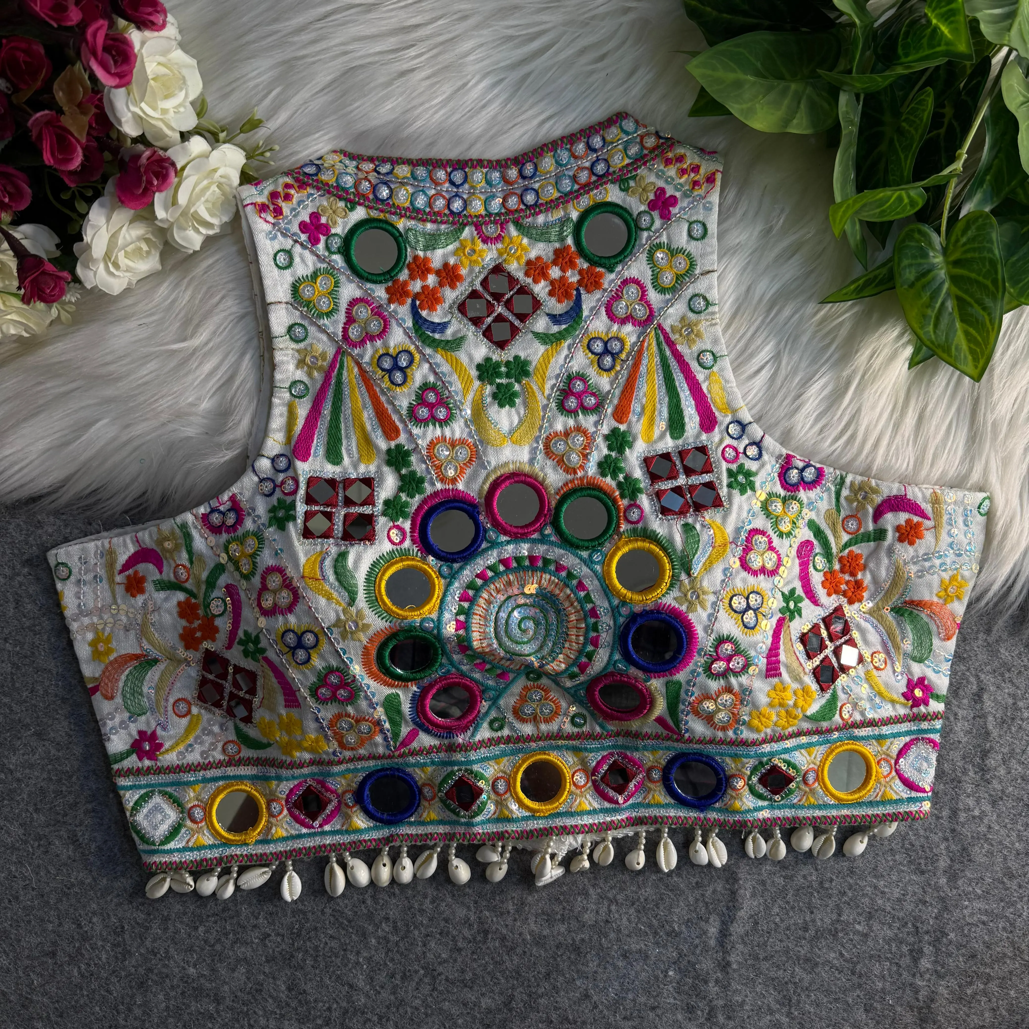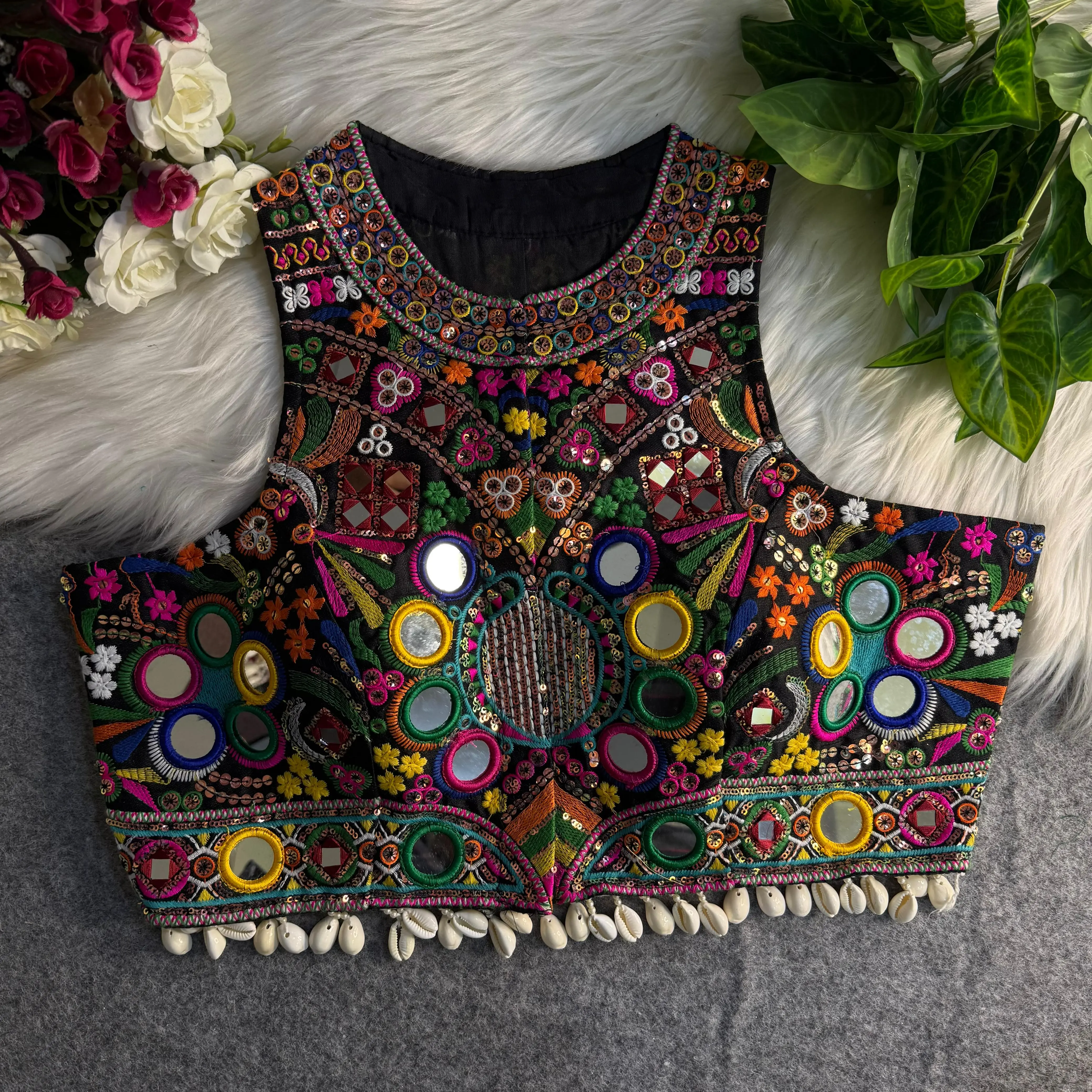 New arrivals* ✨ #Navratri special ready to wear blouse collection ❤️ Original mirror and kutchi work High neck blouse with front openn Premium quality ready made handwork blouse Stylish Real mirror work blouse Ready made ready to wear blouse No sleeves Size 38+4 Sv DM to order +16892678636 whatsapp/call/message 🌿🌿🌿🌿