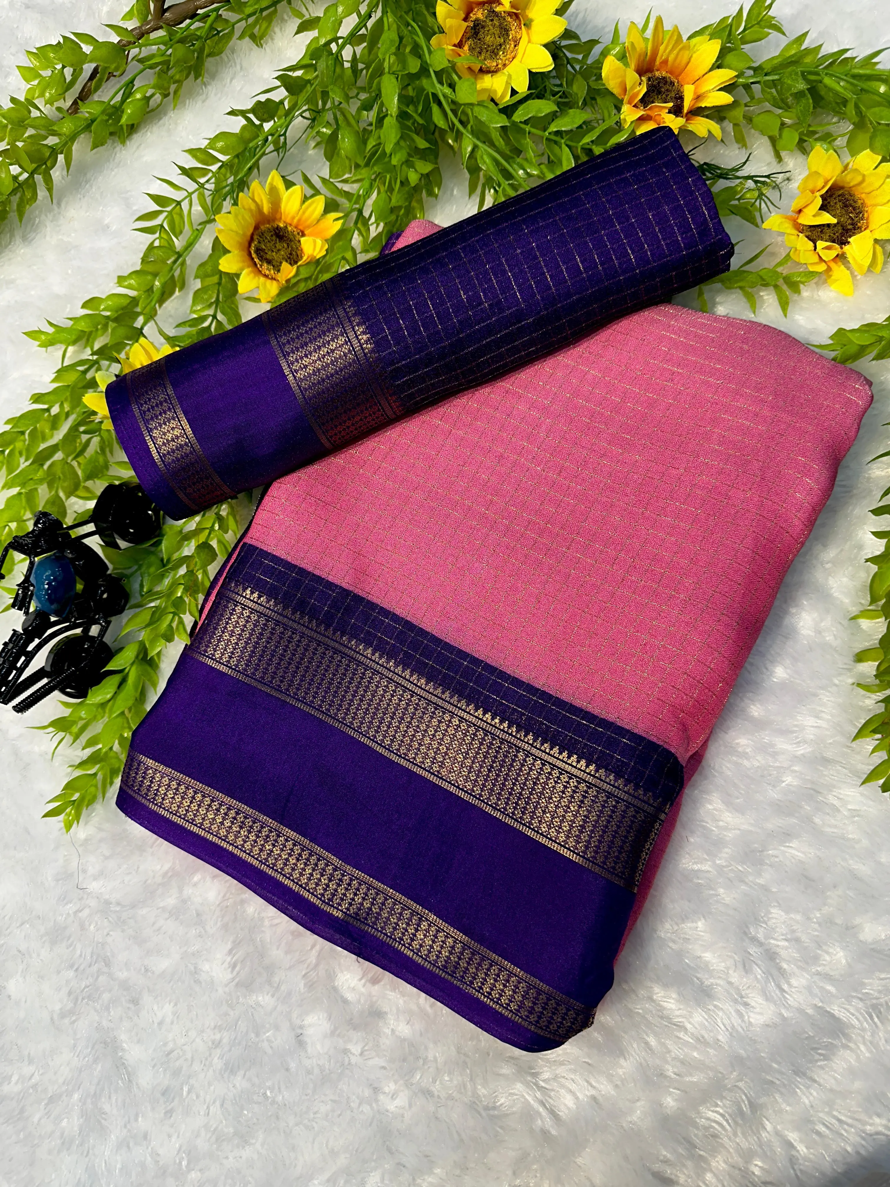 Beautiful mysore silk saree with stitched blouse