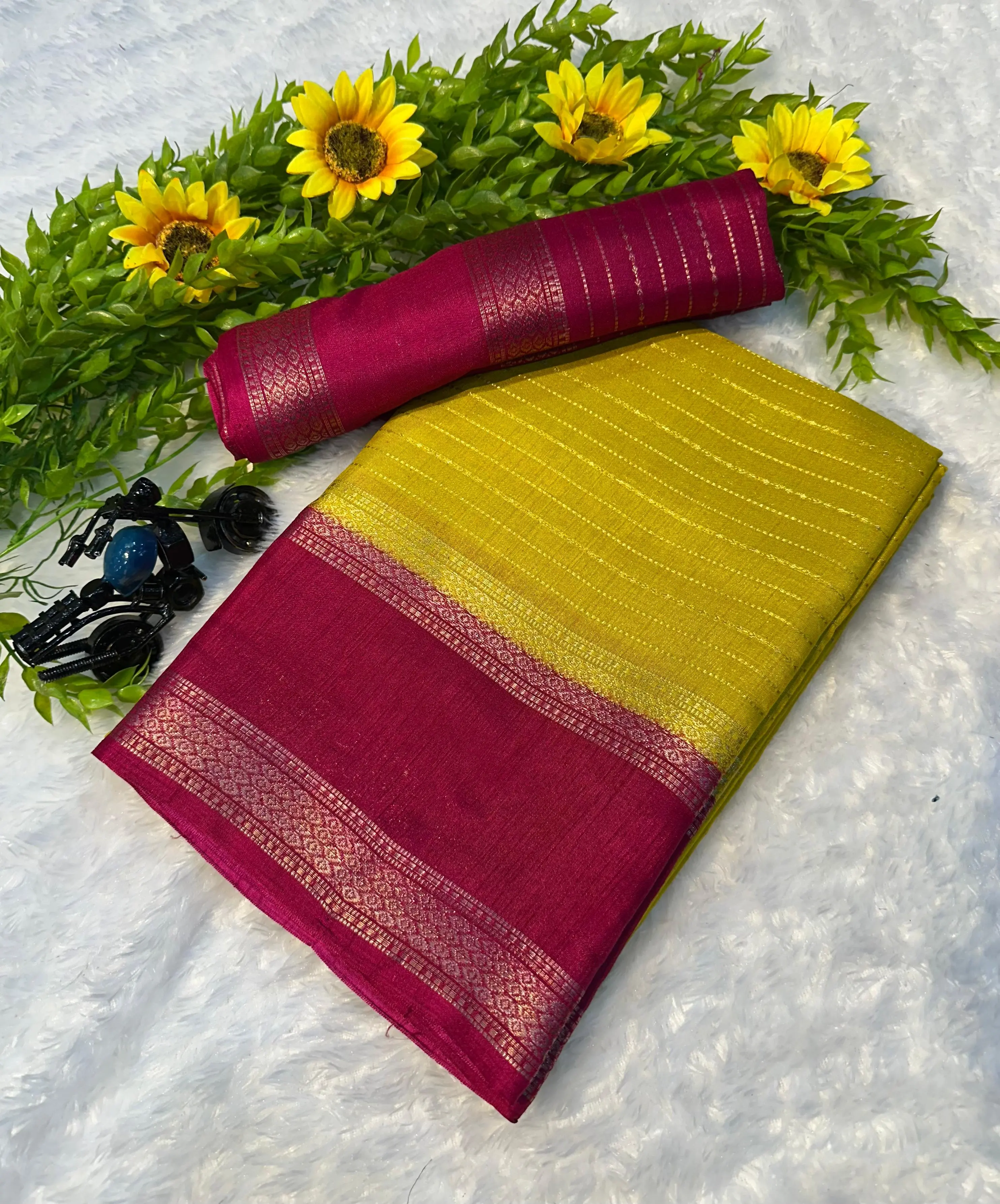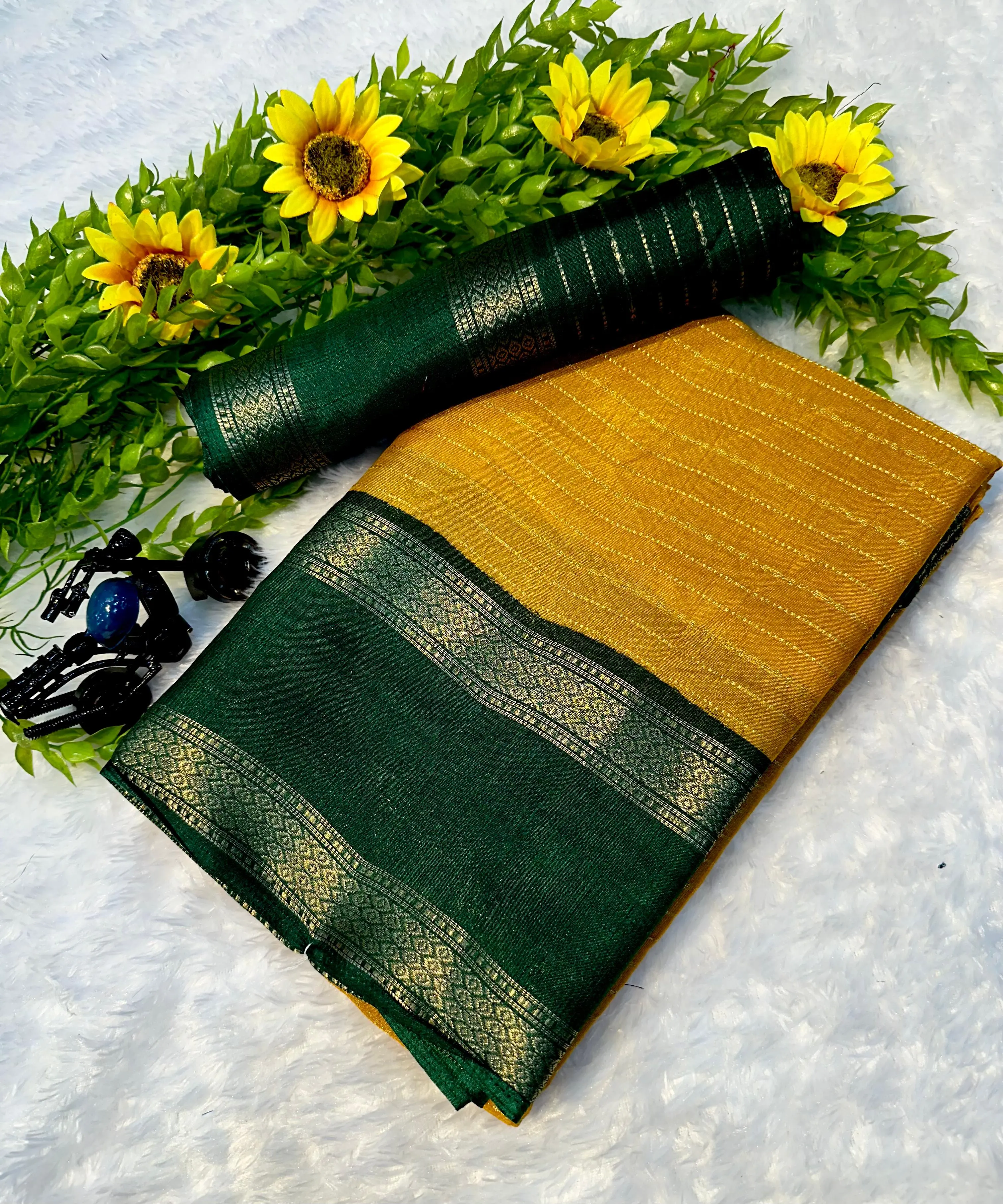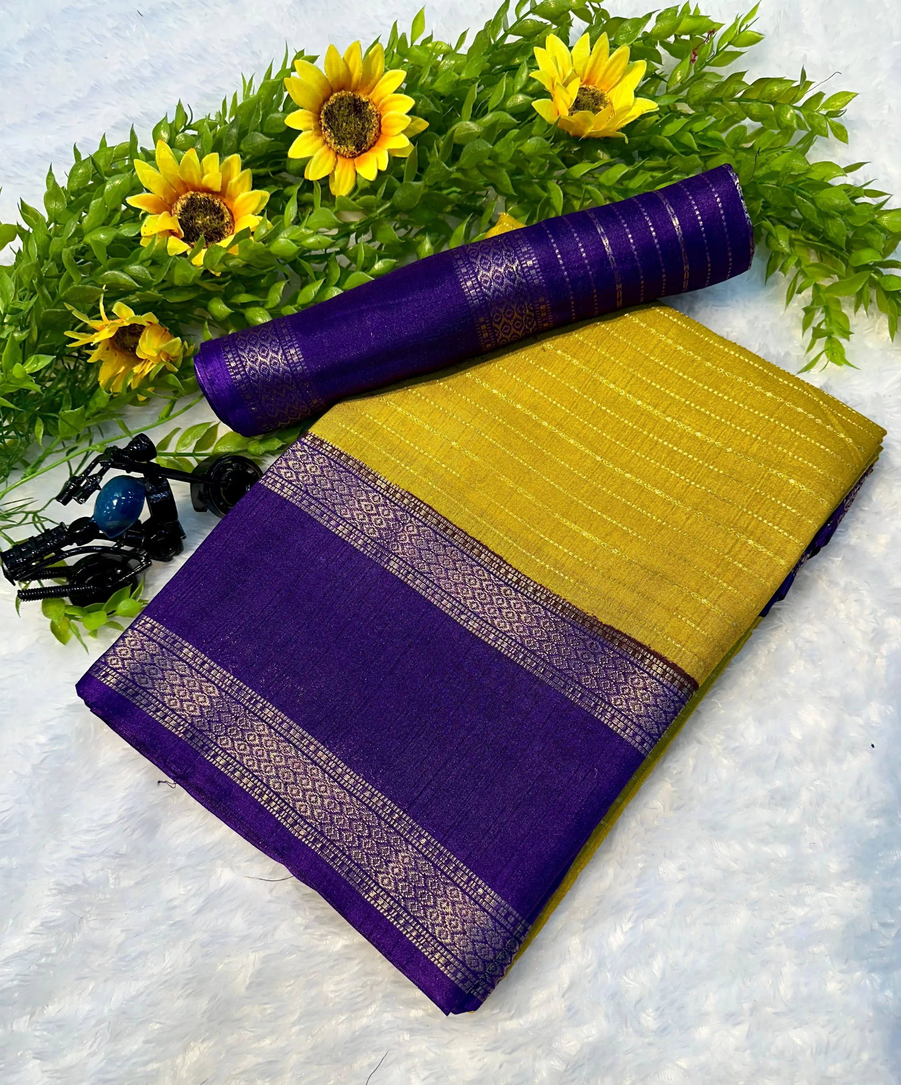 *Fabric - Beautiful heavy mysore silk saree with all over weaving and fantastic two tone padding border* Vas DM to order +16892678636 whatsapp/call/message 🌿🌿🌿🌿