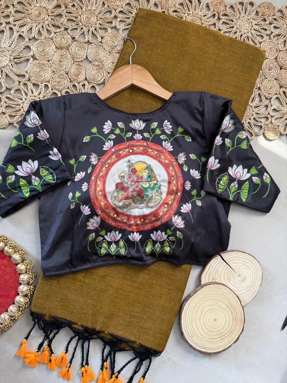*SAREE FABRIC*:🥻KHADI COTTON *BLOUSE FABRIC: Havey Handwork and Cotton silk Padded with cotton silk Lining* Size :-Alterable from 38 to 42 *RATE*: $59 *Redy to 🚢 Vas DM to order +16892678636 whatsapp/call/message 🌿🌿🌿🌿