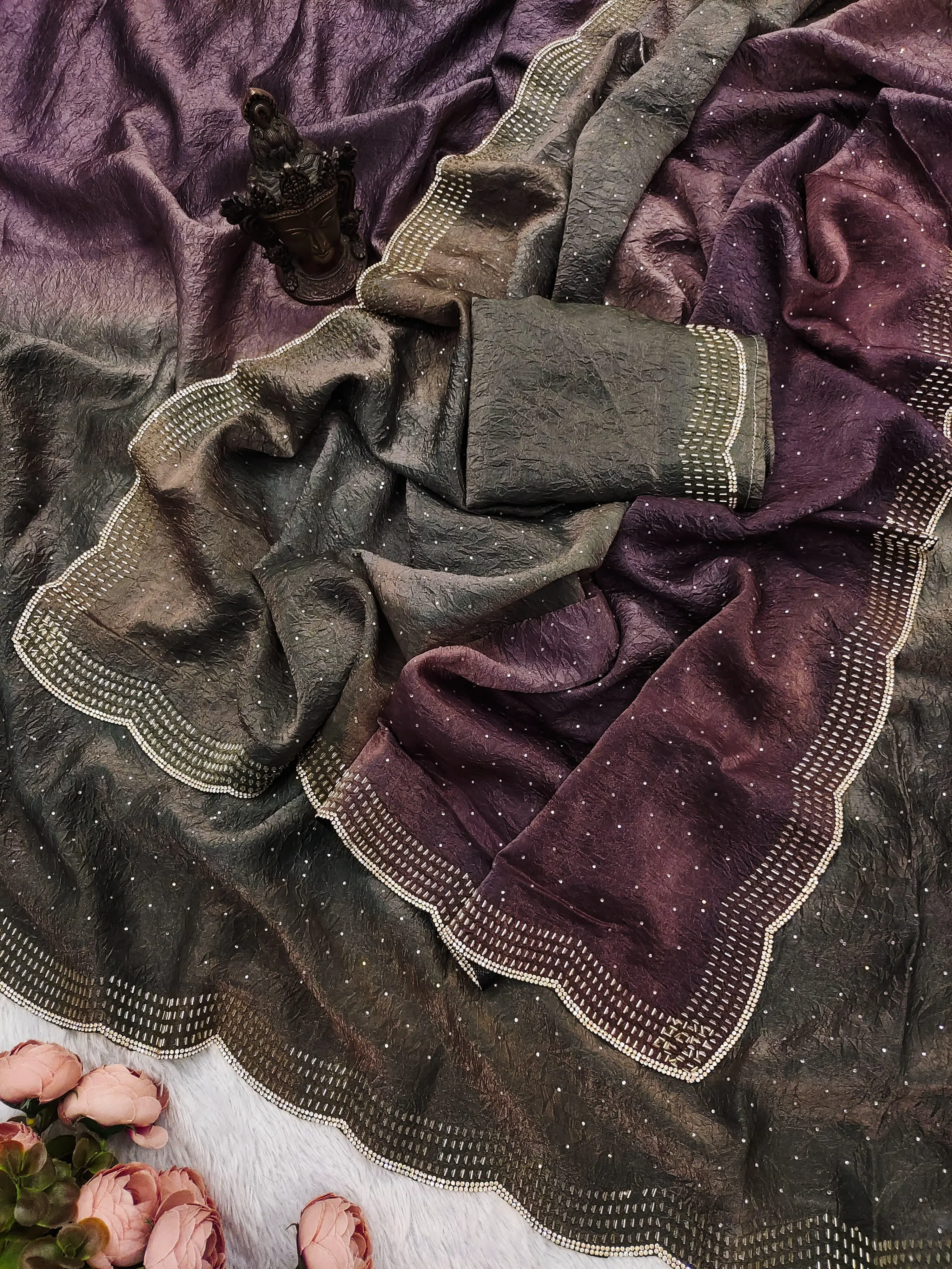 Beautiful crush satin saree